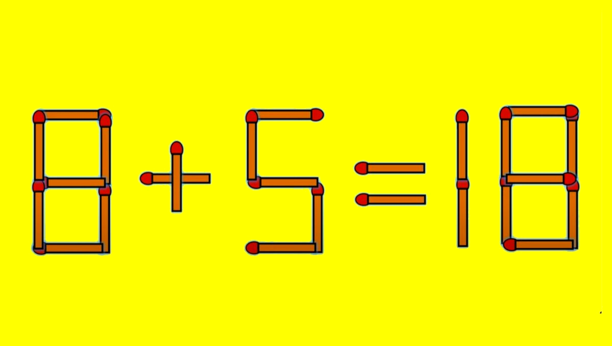 Așa cum spuneam, testul de astăzi pare la prima vedere unul simplu, cu o operație matematică de clasele primare, dar care poate să dea ceva bătăi de cap. În esență, tot ce trebuie să faci este să muți un singur băț de chibrit pentru a corecta egalitatea 8 + 5 = 18.