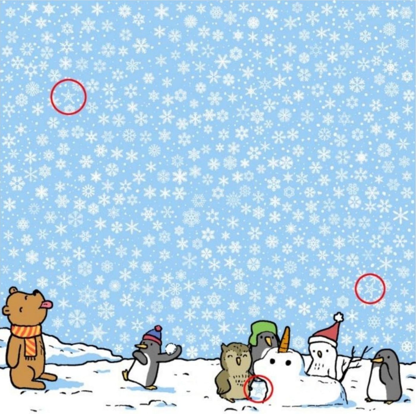 Trucul constă în a observa diferențele subtile: fulgii au șase colțuri, în timp ce stelele au doar cinci. Dacă ai dificultăți, apropie imaginea și analizează cu atenție fiecare detaliu pentru a găsi rezolvarea.