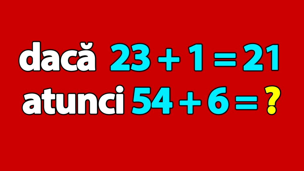 Dragă cititorule, CANCAN.RO ți-a pregătit un test de inteligență pentru genii. Dacă 23 + 1 = 21, atunci cât este 54 + 6? Crezi că reușești să calculezi răspunsul corect? Dacă da, spor la treabă!