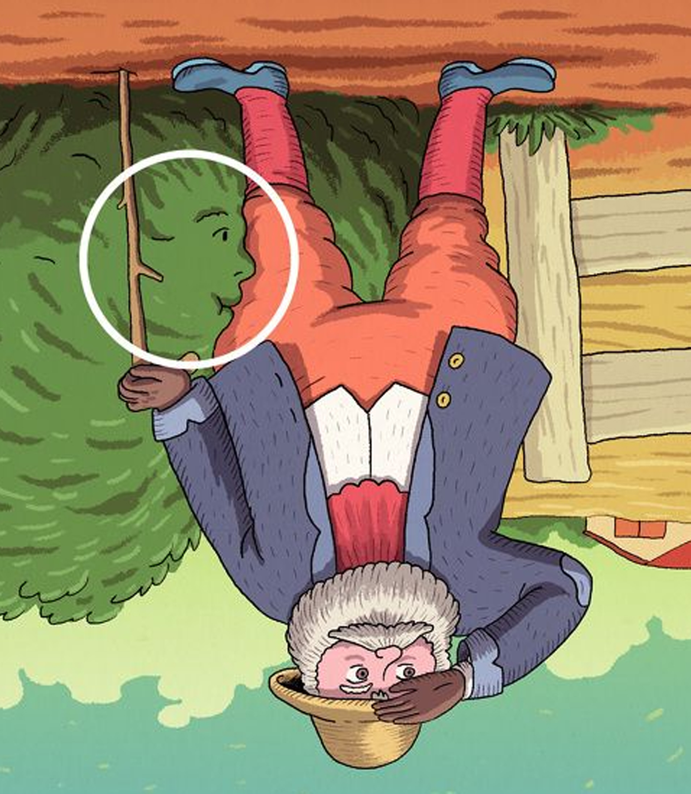 Dacă ai fost foarte atent la întreg cadrul, ai putut observa că bătrânul își tot caută soția, ceea ce înseamnă că ea este undeva, pitită de el. Unde anume? În tufiș! Acolo vei zări chipul femeii. Iată imaginea cu rezolvarea: