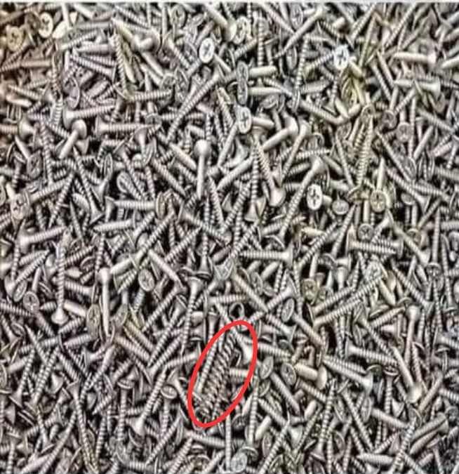 Astfel de teste necesită o atenție sporită asupra detaliilor. Oare unde se ascunde arcul printre șuruburi? În imaginea prezentată mai sus se pot observa sute de șuruburi. Însă, printre acestea se află și un obiect care are, de altfel, o formă similară, dar care nu are aceeași utilitate. Și anume, un arc. Totodată, arcul are o nuanță foarte apropiată de cea a șuruburilor, aspect care îngreunează descoperirea sa. Dacă nu ați reușit să descoperiți arcul, atunci noi vă sărim în ajutor. Se află în partea de jos a imaginii, pe mijloc, încercuit cu roșu!