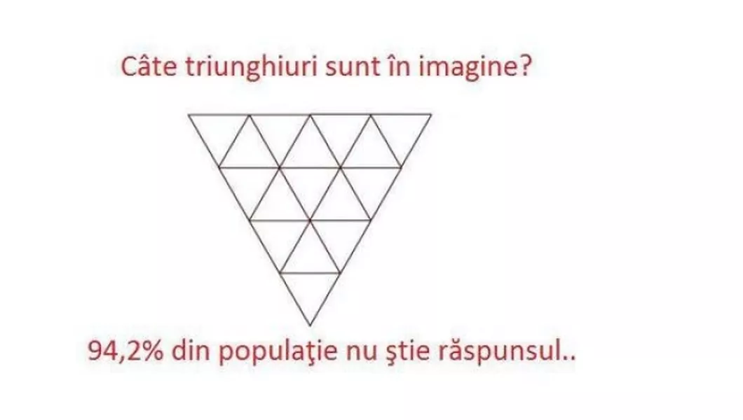 Dacă ai găsit în imagine 27 de triunghiuri, felicitări! Ai ghicit răspunsul corect. Pentru cei care au obținut alt rezultat, avem și explicația ilustrată:
