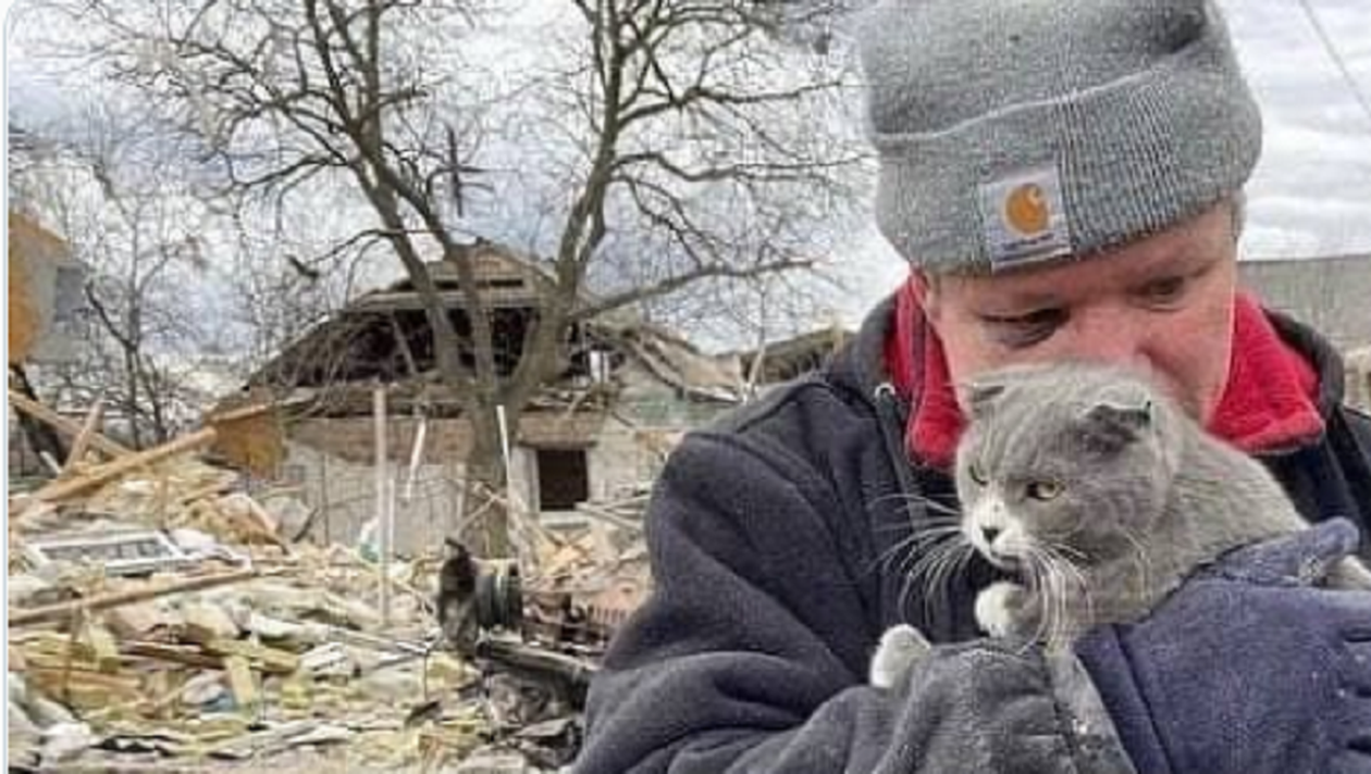 Imaginile în care un ucrainean își strânge la piept pisica, după ce locuința i-a fost bombardată, au făcut înconjurul lumii. Și-a pierdut familia, iar de sub ruinele casei a reușit să-și salveze animalul de companie, care i-a rămas singura alinare.