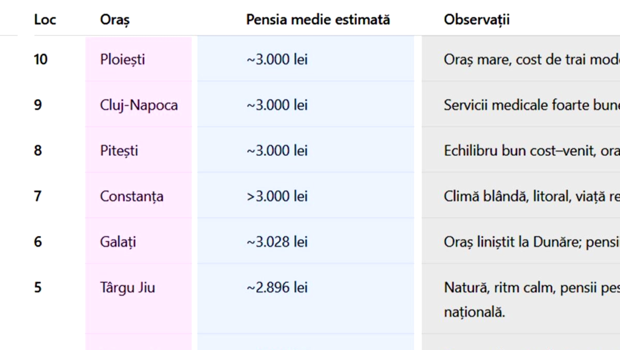 Potrivit datelor oficiale furnizate de Casa Națională de Pensii Oublice, în România trăiesc aproximati 4,7 milioane de pensionari, iar veniturile lor abia depășesc 3.000 de lei în unele județe. Deși există diferențe semnificative între categoriile de pensii, de la oraș la oraș, cu acești bani, există câteva locuri unde seniorii pot avea o bătrânețe liniștită și lipsită de griji. Iată despre ce este vorba!