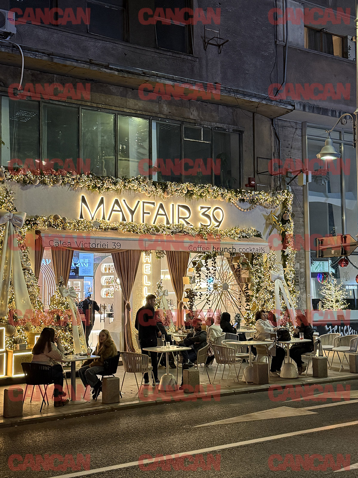 Este o perioadă numai bună să te plimbi pe Calea Victoriei și să admiri clădirile luminate, iar dacă ți se face poftă de o ciocolată caldă, la MyFair39 te poți opri să savurezi una, dar și să bifezi poza aia tare pe Instagram. Fațada localului este decorată ca o scenă londoneză care a decis să se mute pentru o iarnă pe Calea Victoriei: auriu peste tot, lumini curate, aranjamente luxuriante care par inspirate din vitrinele marilor branduri. Nimic excesiv, totul perfect calculat cât să dea perfect în fotografii.Ne-a atras atenția și terasa care, în ciuda temperaturilor de iarnă, adună oameni gata să își savureze cafeaua, ceaiul sau vinul fiert. Tot decorul cu auriu și alb este completat de o roată mare decorativă, lumină caldă care aduce o notă de spectacol și transformă spațiul într-o mică poveste de iarnă chiar în centrul orașului.