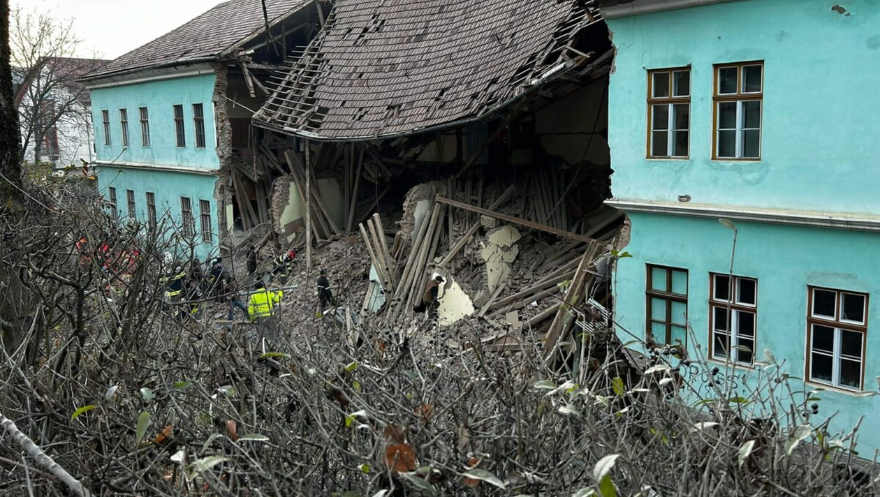 Update | Un elev se află în comă. Clădirea internatului datează din anul 1910. Purtătorul de cuvânt al Primăriei Odorheiu Secuiesc a făcut o serie de precizări, după ce peretele căminului s-a prăbușit.