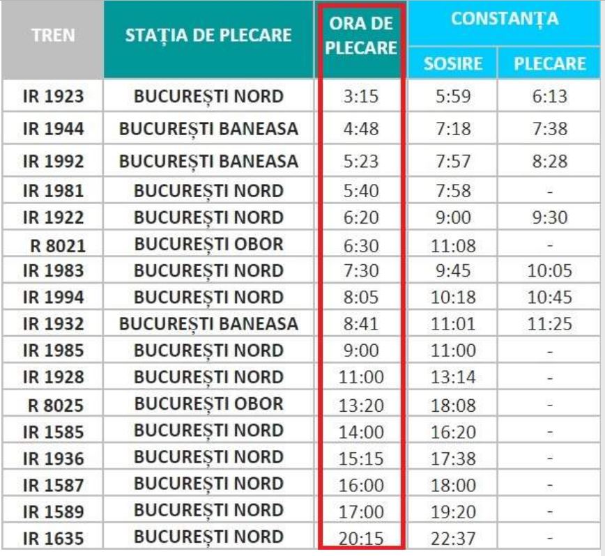 CFR Călători anunță că mersul trenurilor București – Constanța pentru vara 2018 va fi zilnic conform următorului program:
