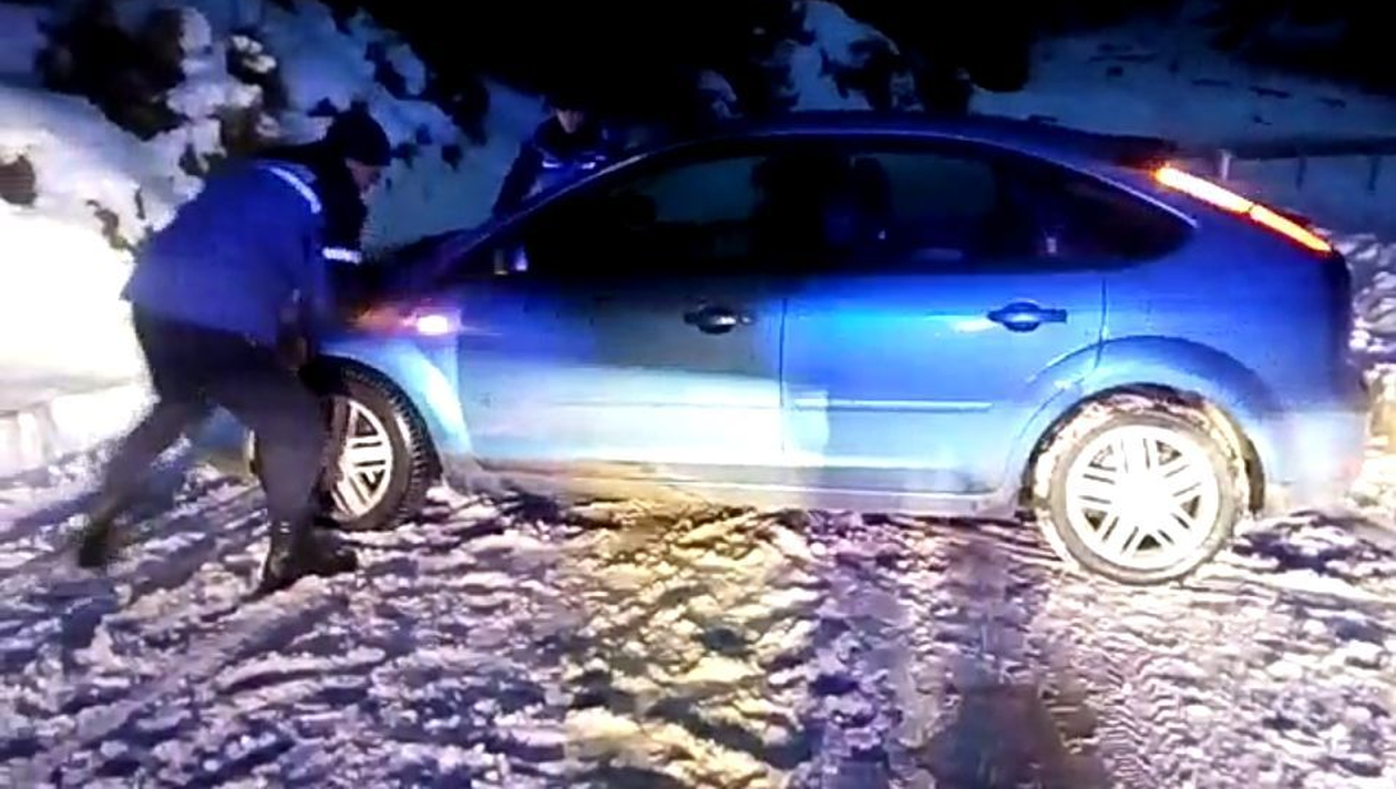 Jandarmii montani au ajutat o familie de turişti blocaţi în nămeţi să ajungă în staţiunea unde îşi vor petrece Revelionul. În maşină se afla şi un bebeluş în vârstă de numai patru luni.