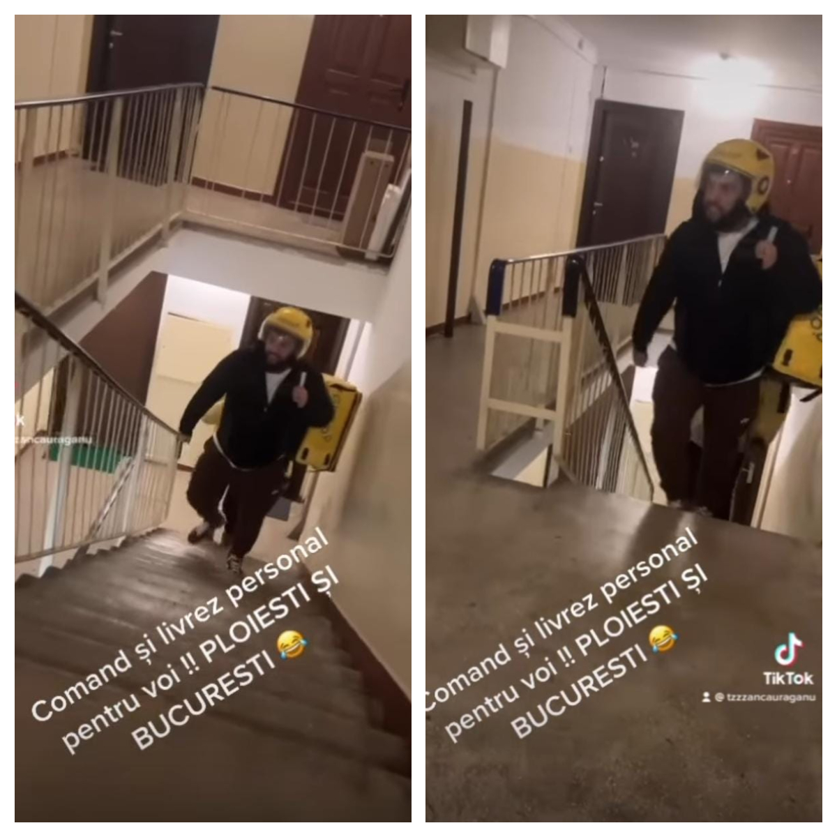 Cântărețul a imortalizat unul dintre momentele în care a dus comanda unui client, chiar până la ușa acestuia.