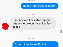 Sătulă de insistenţele lui Rădulescu, Liliana Laffineur i-a transmis acestuia, la un moment dat, un mesaj dur: “Nu mă interesezi ca bărbat!”. Văzând că nu mai are nicio şansă de reuşită, Rădulescu a început să îi scrie mesaje urâte Lilianei. “Oau. Adevărul e că eşti o femeie fatală şi eu un fraier. Mă faci să râd”, i-a răspuns acesta. A fost momentul în care Liliana Laffineur a decis să îl pună definitiv la punct pe Cătălin Rădulescu. “Acceptă realitatea fără să jigneşti, domnule parlamentar. Nu mă consider femeie fatală dar nici o pradă uşoară. În rest, succes la agăţat pe Facebook. P.S. Când un bărbat insistă nu e neapărat fraier, doar agasant”, i-a replicat ea.