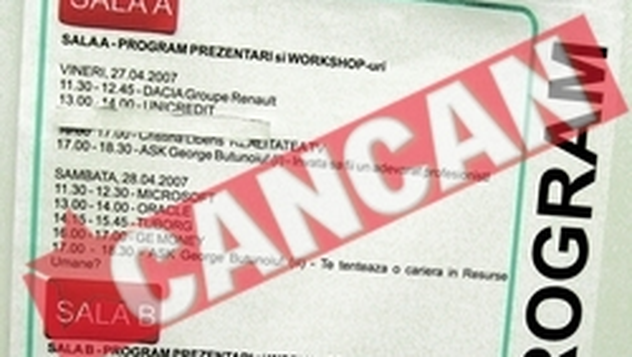 La aproape o saptamana de la ciudata moarte a directoarei Raluca Stroescu, reprezentantii companiei pentru care lucra aceasta au dat publicitatii un comunicat de presa. Practic, si-au prezentat condoleantele, asigurand familia ca va avea parte de tot sprijinul „Ernst&Young”. Despre Raluca, in comunicat se spune ca era un membru de valoare al echipei si ca era „pasionata de cariera”. Compania povesteste pe scurt si ce s-a intamplat inainte de a primi vestea ca directoarea a murit: „Am fost ingrijorati in legatura cu sanatatea ei vinerea trecuta, cand managerul de la Resurse Umane a facut o programare la Centrul Medical Unirea si a insotit-o pe Raluca acolo. Raluca a plecat de la clinica dupa un control si a fost condusa acasa. Managerul de la Resurse Umane si alti colegi au cautat-o la telefon de mai multe ori in acel week-end, dar ea nu raspundea”. „ANULARE. In programul targului de job-uri, evenimentele organizate de „Ernst&Young” au fost acoperite cu o banda alba Ernst&Young” ar fi trebuit sa participe la Targul de Cariere care are loc in aceste zile la Bucuresti. Joi, ei au anuntat ca se retrag. Pe afisele pe care era anuntat programul targului, acolo unde apar work-shop-uri sau mese rotunde ce ar fi trebuit sa fie organizate de „Ernst&Young” este lipita o banda alba de hartie. „Au decis sa nu mai participe si stiu ca aceasta hotarare a venit, in principal, din partea colegilor Ralucai Stroescu”, ne-a declarat Bogdan Gavrila PR, manager al evenimentului.