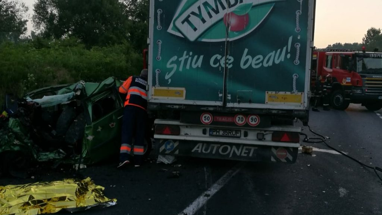 Scăpată de sub control, mașina a pătruns pe contrasens și a izbit un TIR care circula din sens opus. (CITEȘTE ȘI: ACCIDENT ÎNFIORĂTOR PE AUTOSTRADA SIBIU-DEVA)