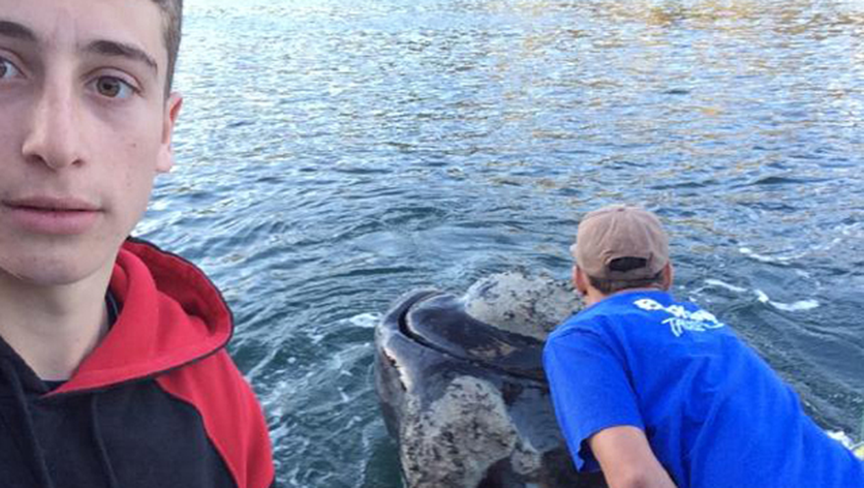 Michael Riggio s-a fotografiat, cand tovarasul lui o ajuta pe balena. Tinerii au declarat pentru ziarul „Daily Telegraph” ca: „Nu ne venea sa credem ca asta chiar se intampla”.