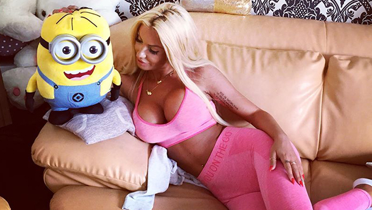 Asistenta TV si-a pus o poza pe internet unde le-a aratat prietenilor virtuali ce corp perfect are. Blondina si-a acoperit sanii siliconati din fotografie cu mainile.