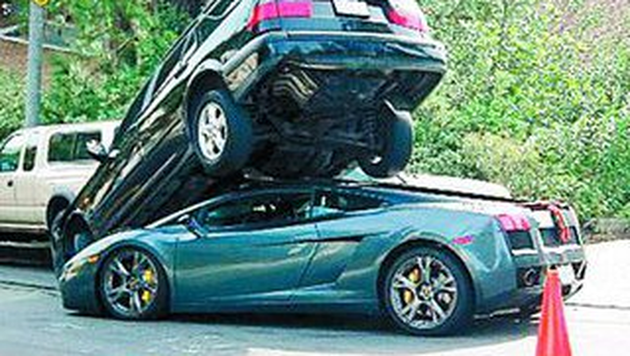 Soferul unui Lamborghini Gallardo in valoare de 156.000 de euro a fost protagonistul unui eveniment nefericit in urma cu cateva zile la Hollywood. Nu se stie cum, barbatul a reusit sa se strecoare cu masina lui sub un Saab 4X4, care cantareste aproximativ doua tone, parcat pe marginea unei sosele. Desi accidentul a fost spectaculos, soferul a scapat viu si nevatamat, iar automobilul Lamborghini are doar cateva zgarieturi pe caroserie. Incidentul a atras zeci de curiosi, care s-au inghesuit sa imortalizeze momentul facand fotografii cu telefoanele mobile.