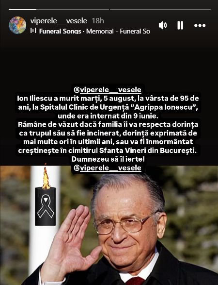 Surpriza a venit de la Viperele Vesele, care au lansat o dezvăluire bombă despre ultima dorință a fostului șef de stat. Potrivit acestora, Ion Iliescu ar fi cerut în mod expres, în repetate rânduri, să fie incinerat.