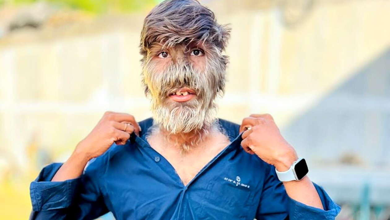 Mai mult decât atât, peste 95% din fața tânărului este acoperită de păr. El suferă de o afecțiune extrem de rară, numită hipertricoză, cunoscută și sub numele de sindromul vârcolacului, care provoacă o creștere anormală a părului.