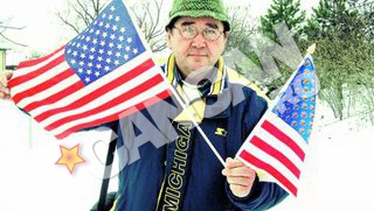 INGENIOS. Ovidiu Paraianu a creat un steag din matase alba cu dungi rosii, iar in locul stelutelor a pus chipul lui Obama