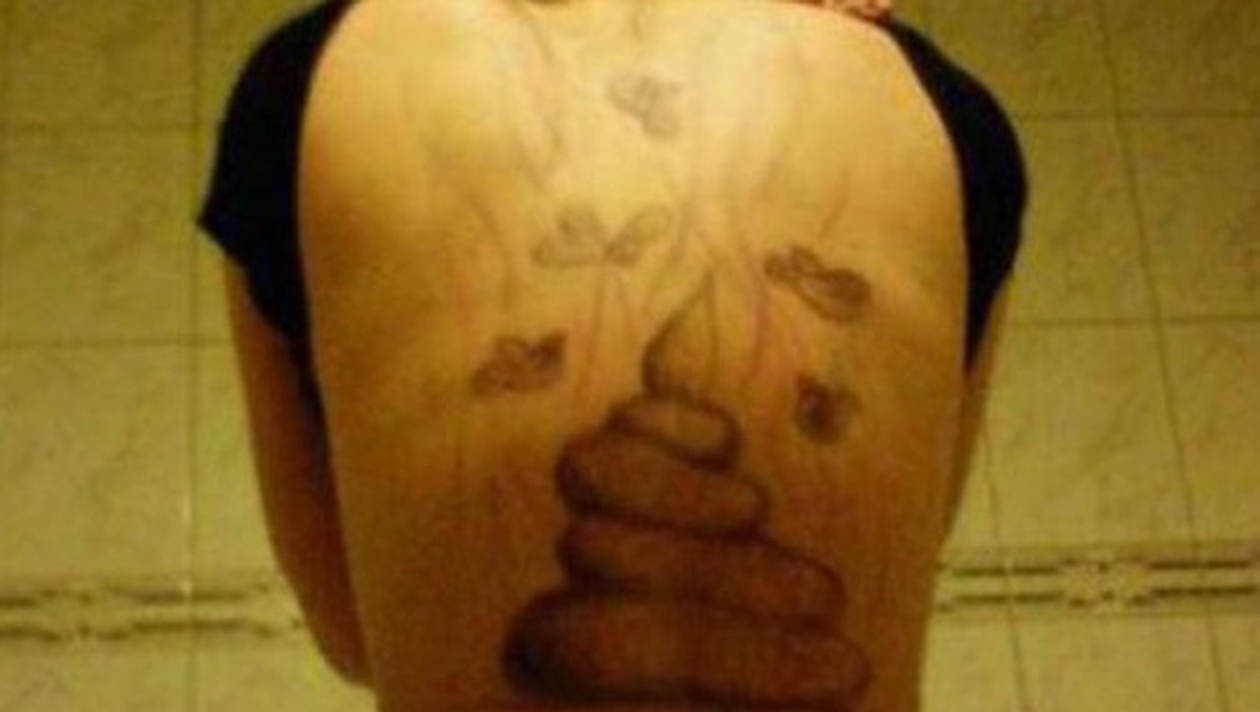 Un maestru al tatuajelor a aflat ca iubita il inseala si s-a gandit sa se razbune pe ea. Barbatul i-a facut cadou un tatuaj pe tot spatele care infatiseaza un morman de rahat bazait de muste.