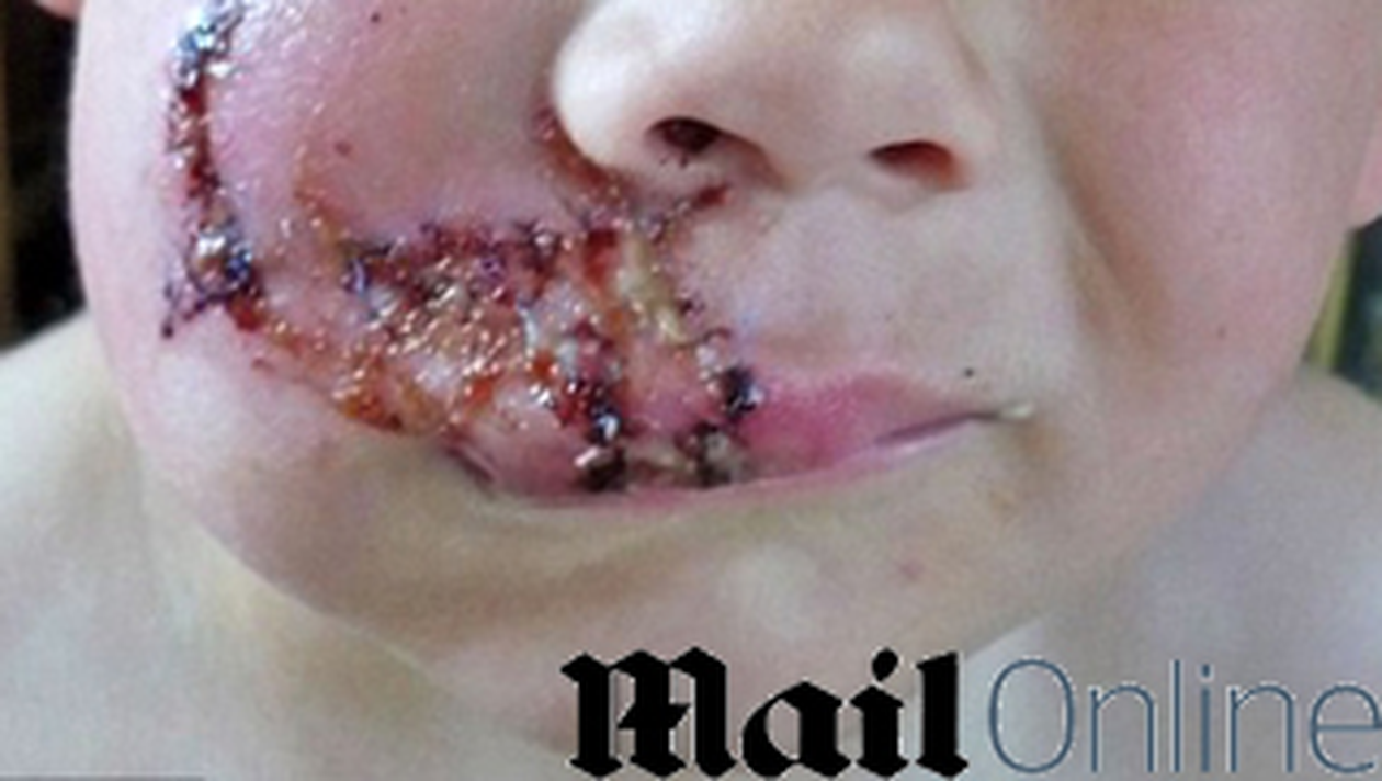 Un baietel de numai trei ani are fata desfigurata dupa ce un caine Labrador l-a muscat foarte tare. Mama micutului povesteste ca a decis sa-si scoata copiii, pe Logan si fratele sau bebelus, la iarba verde, dar a ajuns la spital.