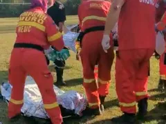 Victima are arsuri de gradul 2 și 3 pe 45% din suprafața corpului, au spus medicii care l-au îngrijit. Bărbatul a făcut de două ori stop cardio-respirator și, de fiecare dată, doctorii au reușit să-i facă inima să pornească din nou. El a fost adus la un spital din Capitală cu un elicopter SMURD care l-a preluat de pe stadionul aflat în comuna Vărbilău.