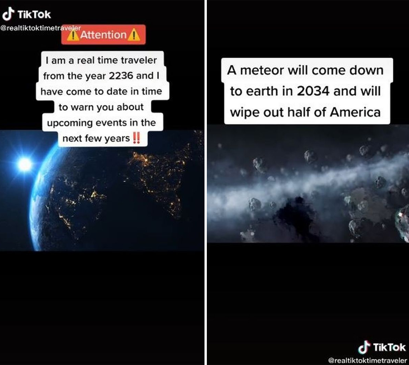 Un utilizator TikTok misterios, care pretinde că este un „călător în timp din 2236”, a transmis un avertisment cu privire la evenimentele majore ce vor avea loc în următorul deceniu și a vorbit, inclusiv, despre un meteorit uriaș care va distruge jumătate din SUA.