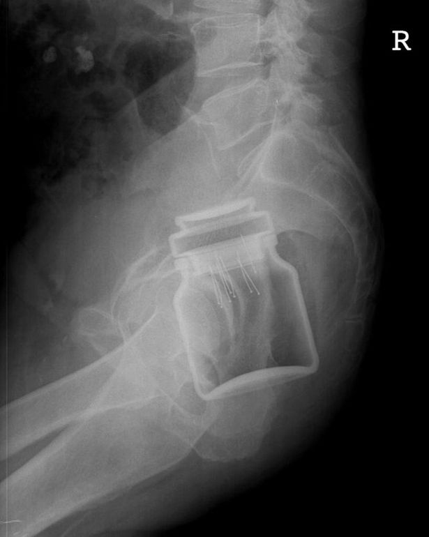Ulterior, pacientul a fost internat pe secţia de reanimare, starea lui fiind bună, iar borcanul a fost oprit de medici pentru a fi pus la colecţia de obiecte ciudate scoase din pacienţi, cu siguranţă la loc de cinste alături de paharul din urmă cu un an.