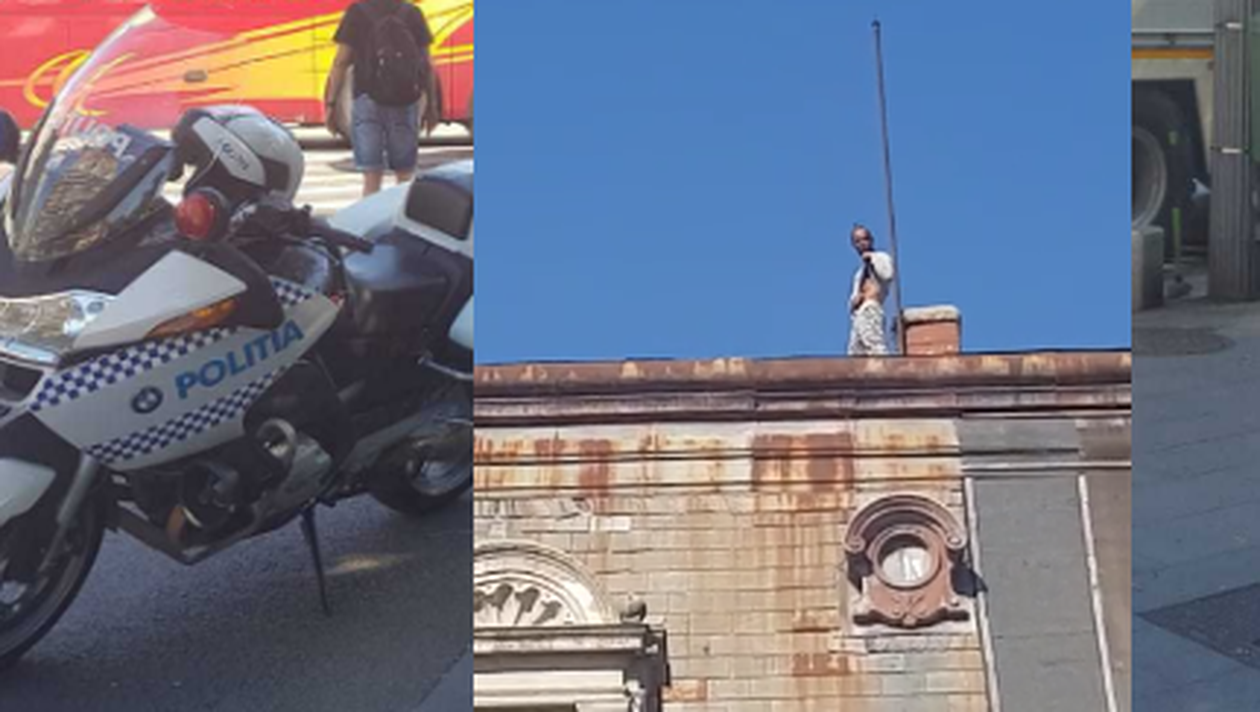 Reprezentanții ISU București-Ilfov au precizat că un bărbat în vârstă de 32 de ani se află pe acoperișul fostului Casino Victoria, din zona Bulevardului Dacia.