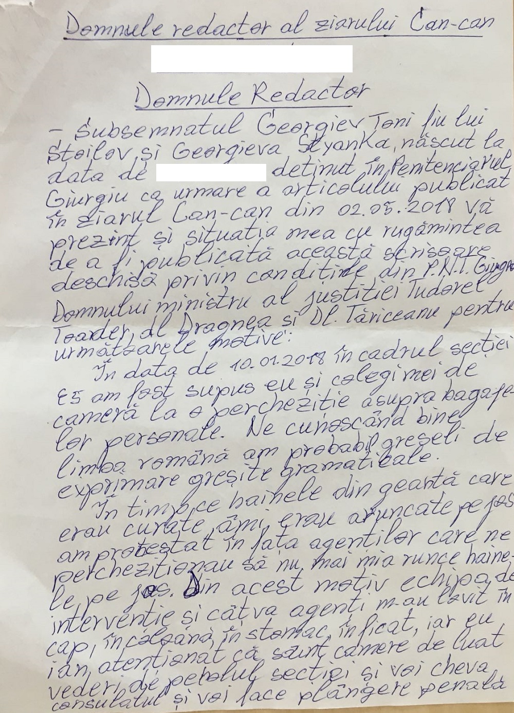 CANCAN.RO, SITE-UL NR.1 DIN ROMÂNIA, a intrat în posesia unor mărturisiri halucinante. Într-o scrisoare expediată pe adresa redacției, deținutul bulgar Georgiev Toni a povestit despre condițiile grele de detenție, dar și despre adevărate orori la care ar fi fost supus în Penitenciarul Giurgiu, acolo unde își execută pedeapsa pentru mai multe jafuri. (VEZI ȘI: ”ÎMPĂRATUL LUMII”, PETRE GEAMĂNU, A FOST ELIBERAT CU… LĂUTARI!)