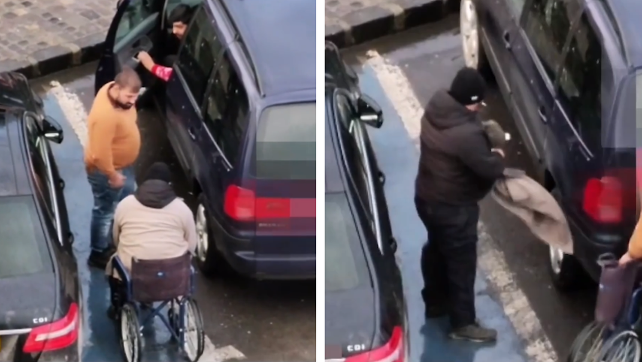 Un bărbat aflat în scaun cu rotile, care cerșea de câteva ore în centrul Brașovului, a fost surprins în timp ce s-a ridicat în picioare. După ce și-a terminat „treaba” individul a mers fără nicio problemă spre mașina în care îl așteptau alți prieteni. Imaginile au devenit virale pe internet.