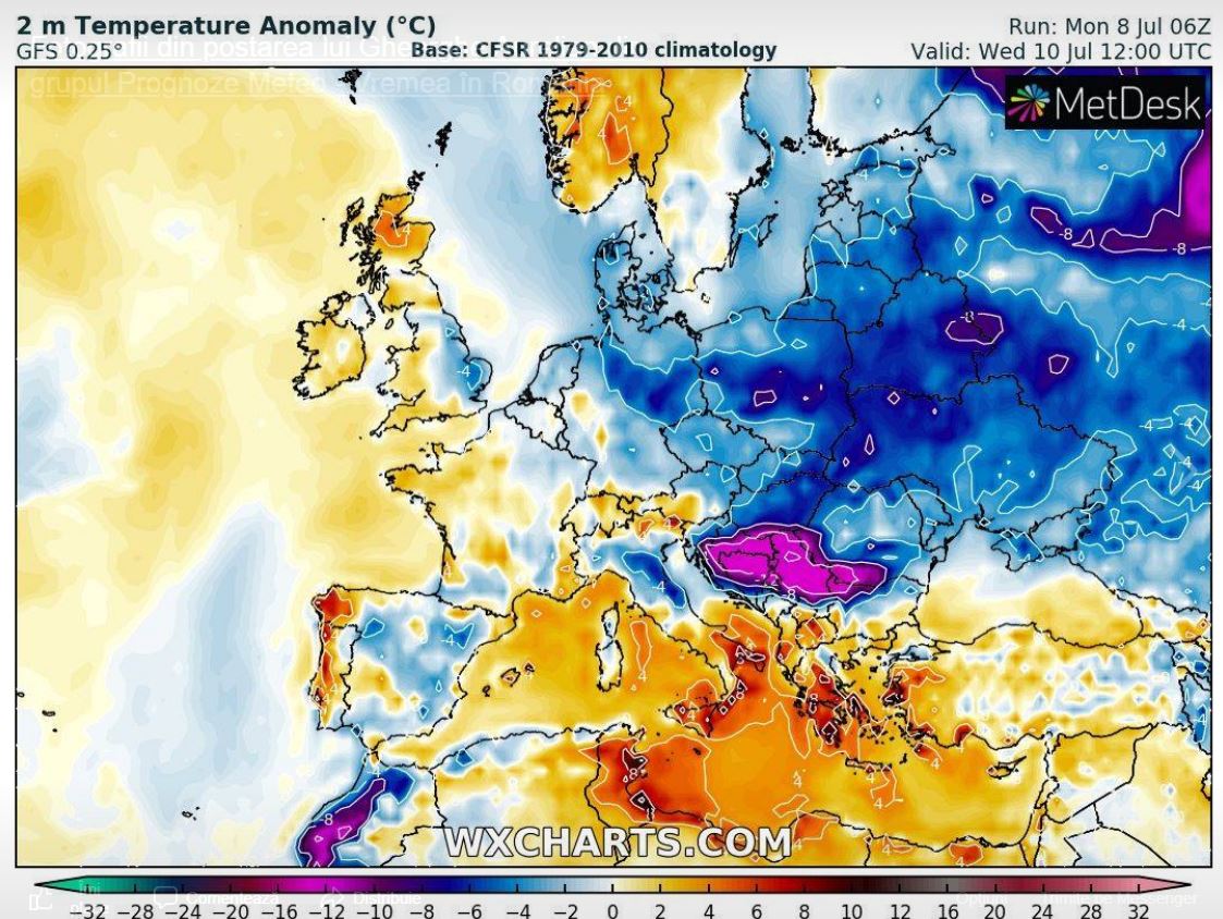 ”În această săptămână, temperaturile vor fi chiar mai scăzute decât se prognoza lunea trecută, abaterile negative urmând să fie în medie de 6-8 grade, dar local chiar și de 10 grade.