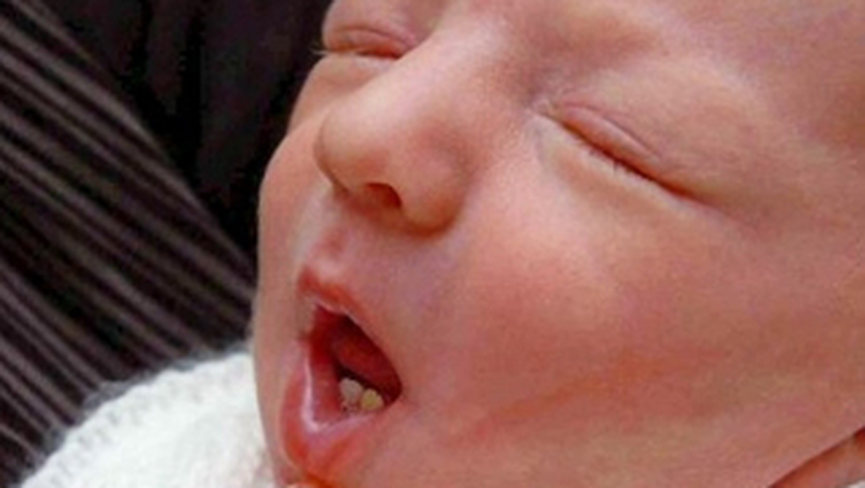 Nou-nascutul are deja incisivii de jos, iar medicii spun ca dintii ar putea sa-i cada si sa fie inlocuiti sau ar putea sa ramana toata viata.