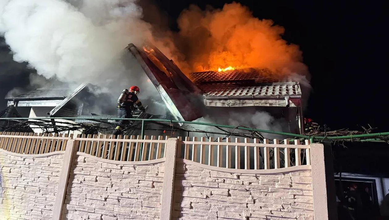 „La sosirea forțelor de intervenție, incendiul se manifesta generalizat la nivelul unei locuințe cu regim de înălțime parter plus mansardă, pe o suprafață de aproximativ 200 mp, existând suspiciunea surprinderii unor persoane în interior.