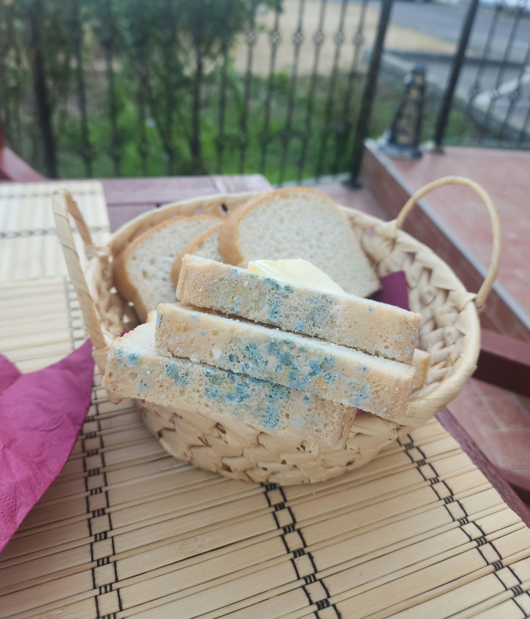 Bărbatul a decis să ia micul dejun la o stațiune din terasă. Comanda a venit în aproximativ 15 minute și totul părea în regulă, însă a rămas șocat atunci când s-a uitat la coșul de pâine. Mai multe felii erau mucegăite. În cele din urmă, a atras atenția ospătarilor, care au venit în grabă să schimbe pâine.