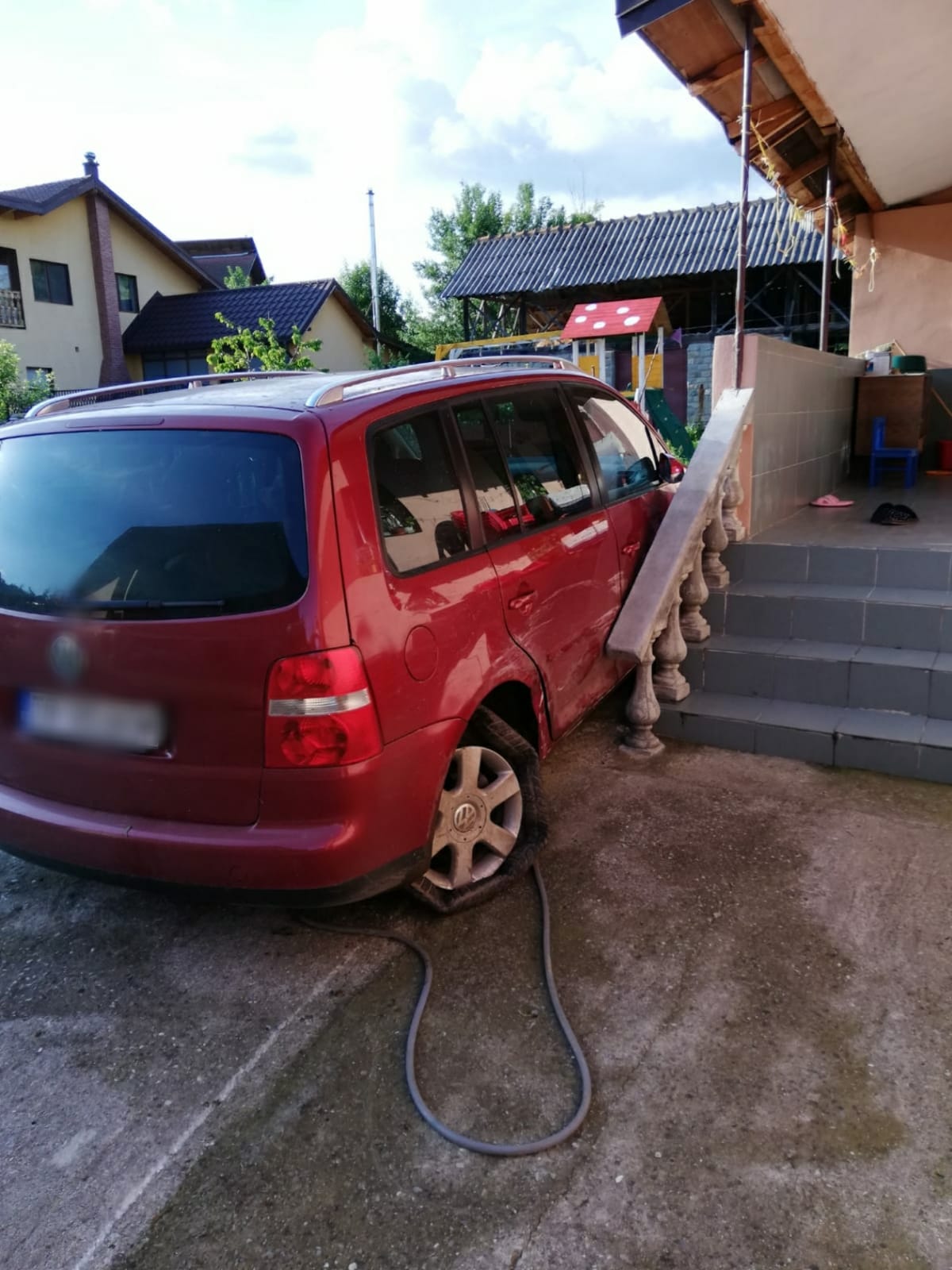 Accidentul spectaculos în județul Dâmbovița, pe DJ715, în localitatea Runcu. Un autoturism a iețit în decor, s-a lovit de un cap de pod și a fost proiectat într-o altă mașină, care era parcată.