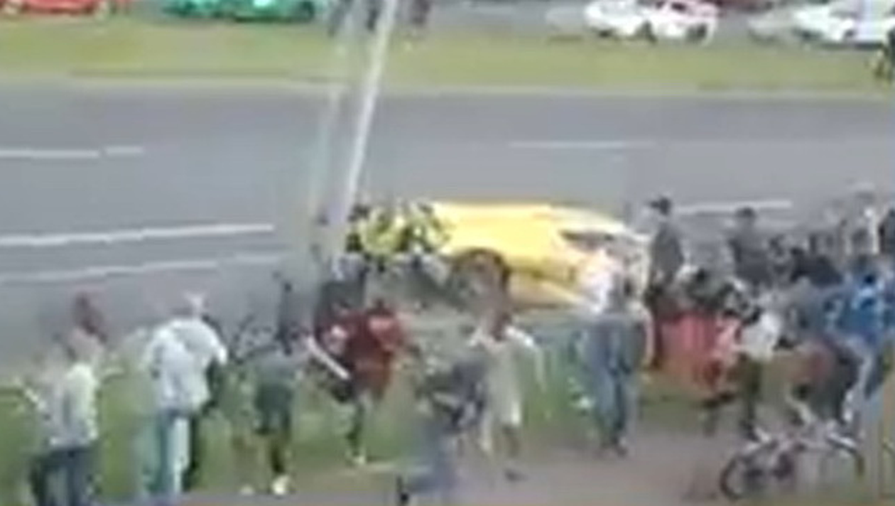 Supercarul suedez a fost scapat de sub control, iar in acel moment masina a intrat in plin in zeci de spectatori aflati pe marginea soselei.