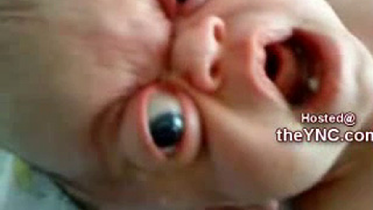 Micutul are ochii iesiti din orbite, iar capul sau este mai mare decat ar trebui. Din imagini se poate vedea ca atunci cand plange, ochii sai ies si mai mult din orbite, iar creierul sau parca nu incape in oasele craniene.