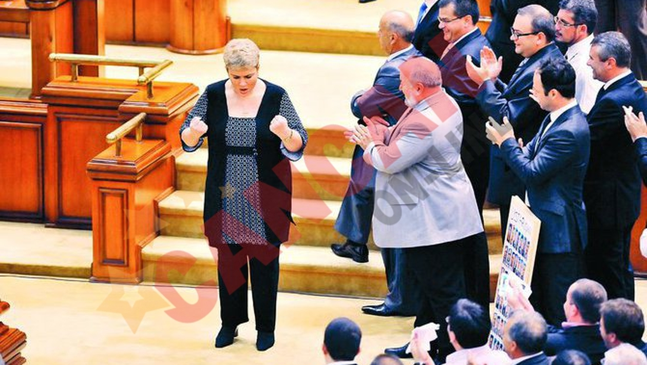 Insa, in momentul in care a ajuns in fata urnelor, deputata PD-L s-a dezlan-tuit. Ea a votat cu bilele la vedere, apoi s-a bucurat, strangand pumnii, la fel ca un fotbalist care marcheaza un gol important. Dupa ce a coborat de la tribuna unde erau instalate urnele de vot, ea a fost aplaudata si imbratisata de reprezentantii Opo-zitiei. Teo si-a explicat gestul de bucurie prin faptul ca a fost fericita pentru ca nu a cazut pe scari, cu toate ca era pe tocuri.