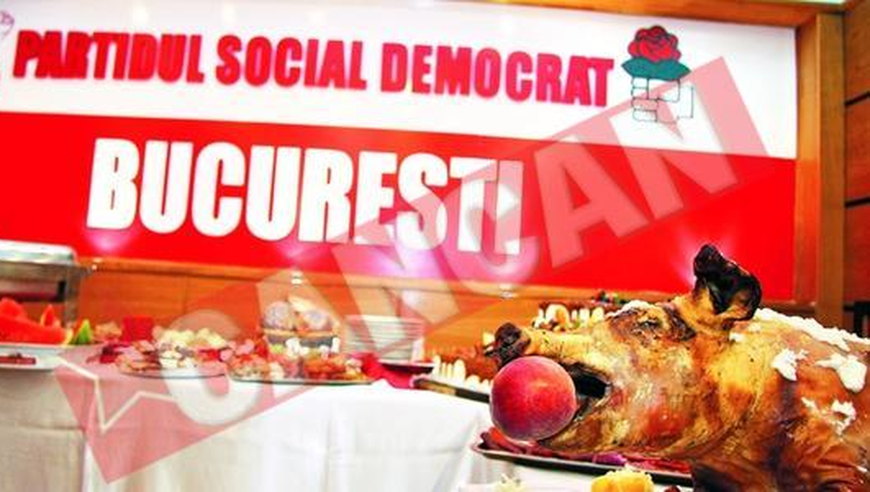 OPULENTA. Masa imbelsugata a costat cateva zeci de milioane de lei vechi, dar a dovedit din nou ca Vanghelie tine la staif CONCILIANTI. Nastase si Vanghelie, o impacare istorica? POPULAR. Iliescu a fost, ca de obicei, idolul pesedistilor Distractie. Mare paranghelie mare, joi seara, la PSD Bucuresti: liderul Marian Vanghelie si-a serbat cei 40 de ani impliniti si a dat de mancat si de baut „fara numar” Cum si-a rasfatat „Marean” invitatii: purcelusi de lapte cu piersici in gura, produse de patiserie, aperitive, somon, specialitati vanatoresti, fructe, zeci de sticle de bauturi alcoolice de tot felul: whiskey, sampanie, vin. Tortul de tiramisu imbracat in ciocolata si caramel a avut peste 20 de kilograme. Invitatii au sarit de 200, in frunte cu Iliescu, Geoana, Nastase, Hrebenciuc si altii. Cadourile, interesante: Geoana i-a daruit dreptul de a participa la sedintele BPN, gest aiuritor si nestatutar, cum numai pe la liderul PSD se poate vedea, in timp ce Hrebe si-a scos cravata rosie de la gat si i-a dat-o, pentru ca uitase sa cumpere un cadou din timp. Nastase i-a daruit un audio-book ce contine cartea sa „Codul Zambaccian” si editorialele publicate in „Jurnalul National” citite, conform Newsin, de voci celebre, ca sa aiba ce asculta in masina, cand este blocat in trafic, pentru a-i mai trece plictiseala. Cat despre Iliescu, acesta i-a facut cadou o apreciere cam intepatoare si cam rautacioasa in discursul rostit: „El are niste handicapuri in planul pregatirii, dar face mari eforturi si se poate observa aceasta evolutie. La varsta lui poate sa-si completeze ceea ce n-a putut sa faca la tinerete”. Altfel spus, e tolomac, dar se trateaza… (D.M.)
