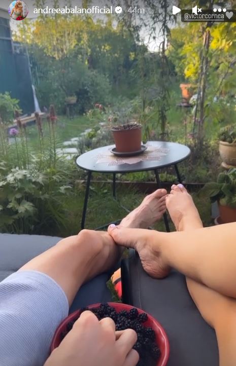 Apoi, Andreea Bălan a făcut o postare din grădina casei din Sibiu, alături de iubitul ei, Victor Cornea. Cei doi se relaxează.