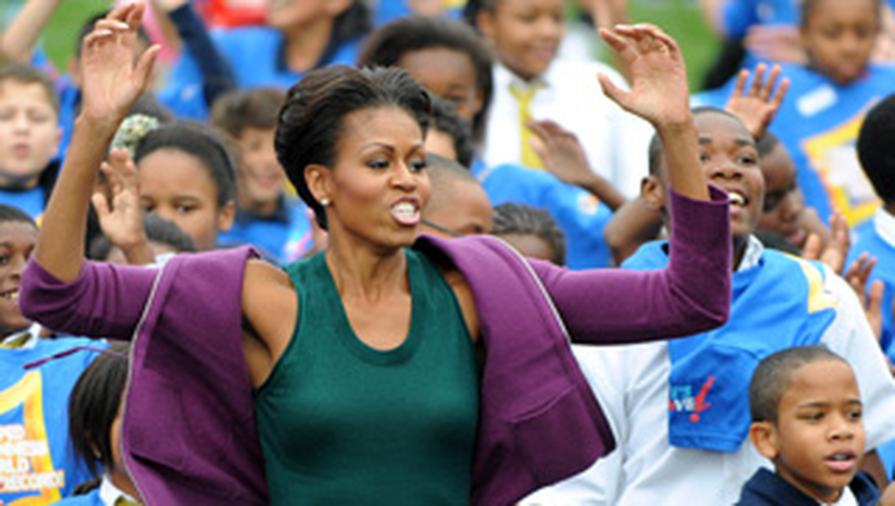 De cand a devenit Prima Doamna a Americii, Michelle Obama incearca sa-si convinga concetatenii sa faca miscare. In cadrul celui mai recent eveniment din campania ei pro-sport, sotia presedintelui SUA a topait de zor pe gazonul Casei Albe, incojurata de 400 de copii imbracati in tricouri albastre.