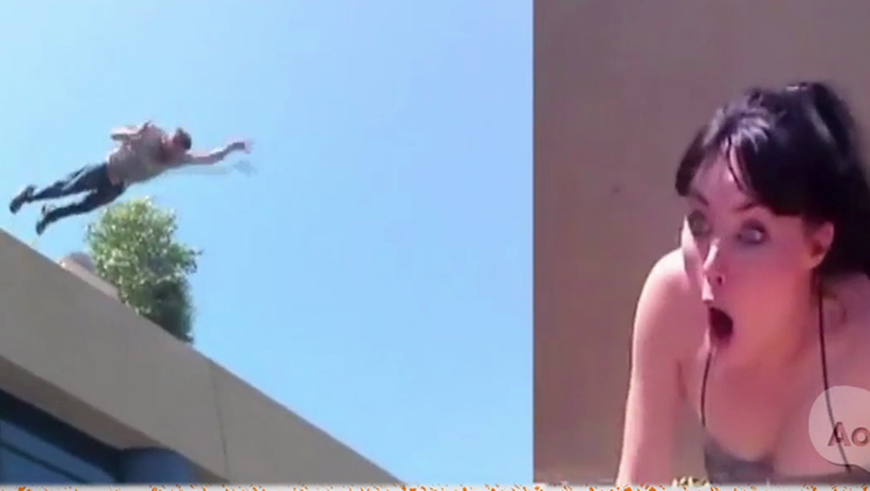 Baiatul si-a invitat prietenii si viitoarea sotie pe acoperisul unei case, dupa care a inceput sa tina un discurs. Bucuria fetei, care visa la o cerere in casatorie romantica, a fost la un pas sa se transforme in cosmar. Barbatului i-a fost aruncat inelul de catre un prieten, dar in incercarea acestuia de a-l prinde a cazut de pe cladire. Din fericire, totul a facut parte dintr-un plan bine pus la punct al tipului. Jos, il astepta o saltea gonflabila si un text „Would you merry me? (n.r. vrei sa te casatoresti cu mine?)”.