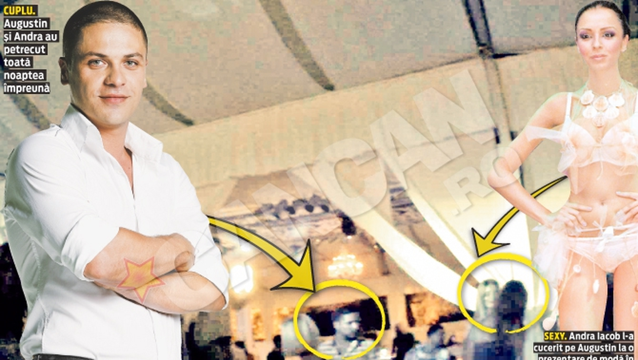 Conform unor surse apropiate fetei, Augustin si Andra s-au cunoscut acum mai bine de o luna intr-un club, la malul marii, unde fata l-a impresionat puternic pe actor dupa ce a defilat in lenjerie intima. Dupa o perioada de „tatonare”, cei doi au ales acest sfarsit de saptamana pentru a-si face publica relatia. Augustin si fotomodelul au fost vazuti sarutandu-se fara nicio retinere vineri seara intr-un club din Mamaia. La drept vorbind nici nu au de ce sa-si ascunda idila, mai ales ca Augustin si-a recapatat titulatura de burlac, iar Andra a iesit din relatia pe care a avut-o la inceputul verii cu dinamovistul Marius Alexe. Conform acelorasi surse, cei doi vorbesc zilnic la telefon, insa nu ajung sa se vada decat la sfarsitul saptamanii, cand actorul fuge la mare.