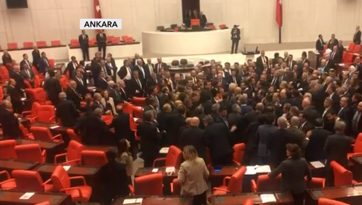 Se pare că elemetul declanșator l-a constituit discursul unuia dintre parlamentarii din opoziție, care l-a acuzat pe preşedintele turc Recep Erdogan că nu respectă soldații turci care au murit în Siria.