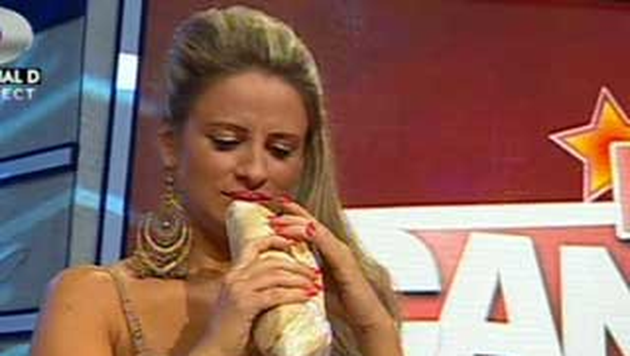 Prima data a fost randul grasutelor. Marilena Chelaru nu a mai putut musca din imensa mancare si, ca o doamna, a luat o furculita si a incercat sa dea gata saorma asa.Castigatoare a fost Doina Ghitescu.