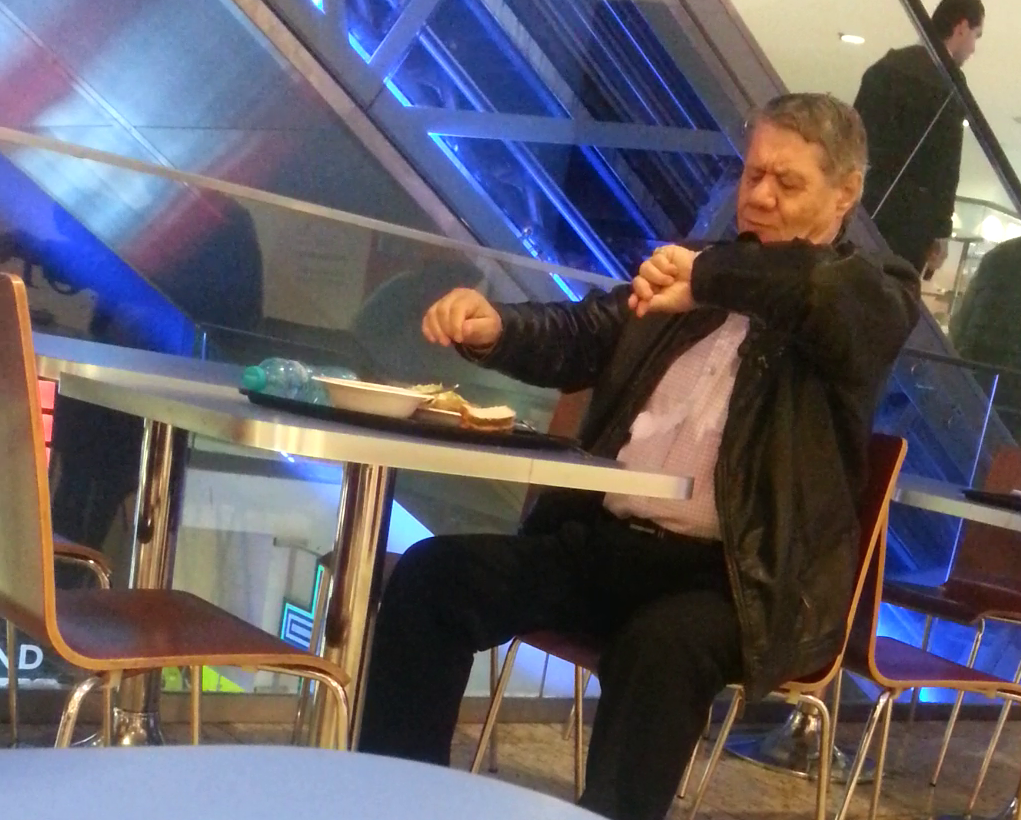 Ion Parcalab, fostul mare jucator al “cainilor” din “Stefan cel Mare”, s-a oprit din drumul sau spre cantonamentul ros-albilor de la Saftica intr-unul din mall-urile din nordul Capitalei. Singur, omul care a castigat de patru ori titlul de campion cu Dinamo a comandat o friptura si o salata, meniul fiind servit pe fuga.