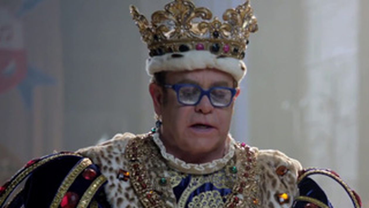 Elton John si-a luat roba de rege pe el si tocurile de 20 de centimetri, de culoare aurie! S-a asezat maiestuos pe tron si a inceput sa dea ordine in palatul sau, executand persoanele care nu stiu ca cante.