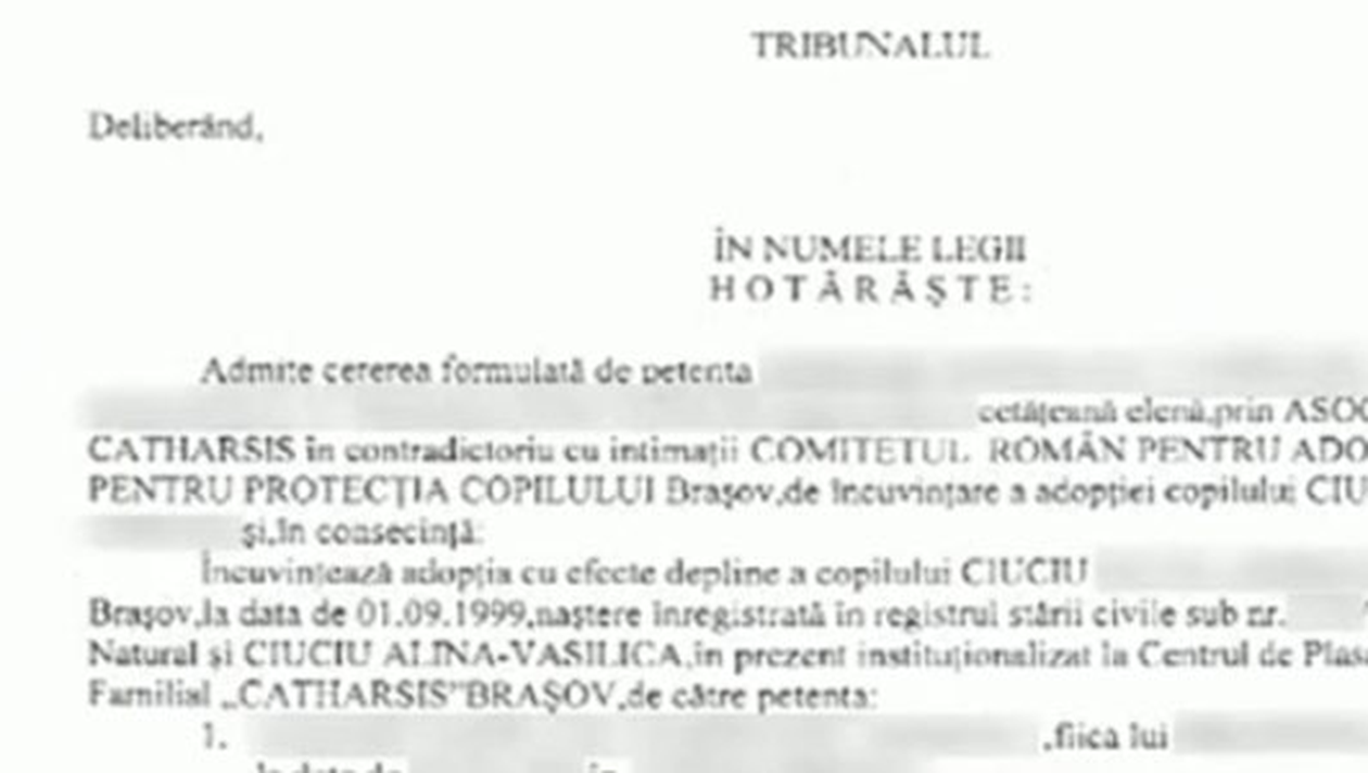 Un act, scos la iveala de autoritati, demonstreaza ca Adina Brabu a adus pe lume un baietel la varsta de 17 ani pe care l-a abandonat in maternitate. Dupa sase luni de la nastere aceasta a fost decazuta din drepturile parintesti. Micutul a fost adoptat de o femeie din Grecia.