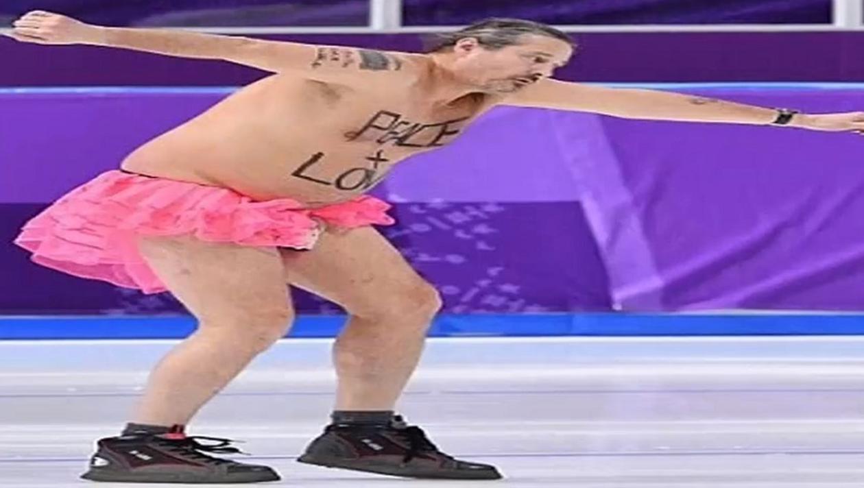 În vârstă de 55 de ani, un britanic a captat atenția la Jocurile Olimpice de Iarnă 2018, după ce s-a dezbrăcat și a rămas într-un tutu roz și pantofi sport negri. Neștiind nimeni ce se întâmplă, de fapt, bărbatul a avut timp să facă mai multe mișcări pe gheață. Toate cu o grație aparte, mai ales că avea și un mesaj pe care îl transmitea.