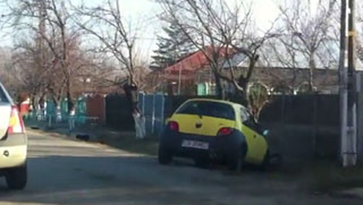 O soferita de la tara a incercat sa treaca de o masina parcata pe partea stanga a carosabilului si a tras maximum de volan spre dreapta pentru a efectua manevra de depasire. Din nefericire, reflexele ei nu sunt foarte bune si a uitat sa traga de volan in stanga. Rezultatul? A intrat cu masina direct in pom!